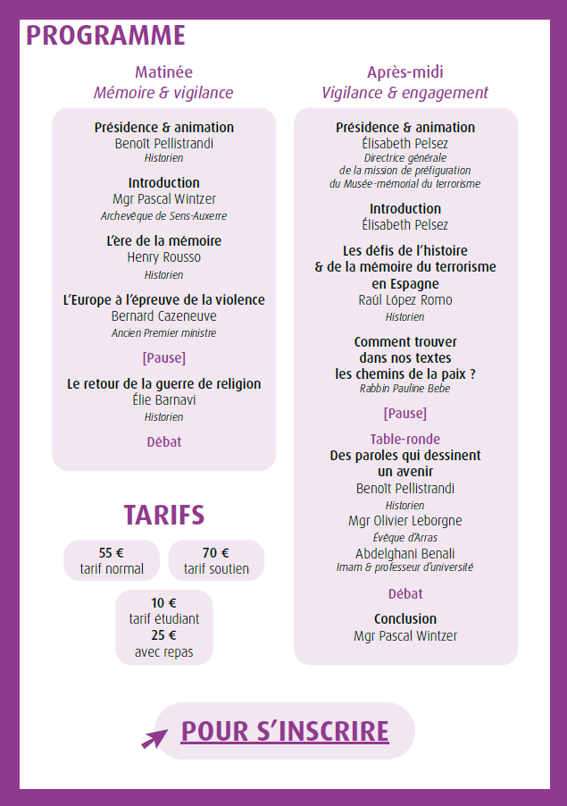La matinée a été ouverte par Henry Rousso, historien et président de la mission de préfiguration du Musée-Mémorial du terrorisme, qui a proposé une réflexion sur l’ère de la mémoire. Ses propos ont dialogué avec ceux de l’ancien Premier ministre Bernard Cazeneuve, de l’ancien ambassadeur d’Israël en France Elie Barnavi et de Mgr Pascal Wintzer, dans un échange nourri sur la manière dont les sociétés affrontent la violence terroriste et ses traces.